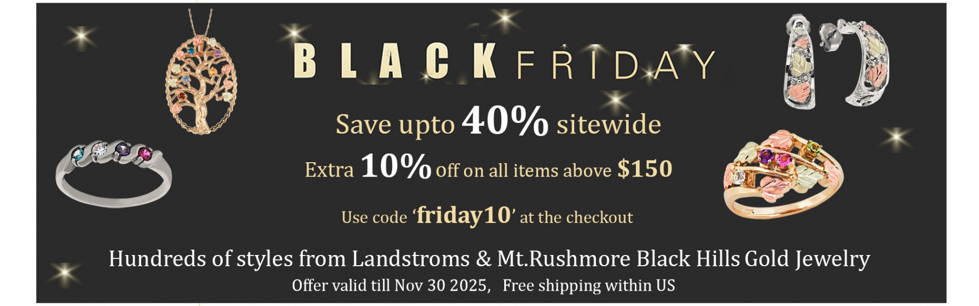 According to the legend, a French goldsmith named Henri Le Beau became lost during the "gold rush days" of the middle 1870 in the Black Hills of the South Dakota and fell asleep believing he was dying of the thirst and starvation. During a dream, he saw a mountain stream with grapevines growing on its banks.Upon awakening, he walked over a rise and found the stream and grapevines just as he had in his dream and, out of gratitude, dedicates his life and talents to creating jewelry reflects much of its original design - with a wide range of new variations. Today a series of 40 different steps are necessary to capture the same dramatic details in our traditional and contemporary designs. We offer best deal on Black Hills Gold Rings, Black Hill Gold Bracelet, Black Hills Gold Earrings, Black Hills Gold Necklace, Black Hill Gold Watch, Black Hills Gold Engagement Rings, Black Hills Gold Wedding Rings.